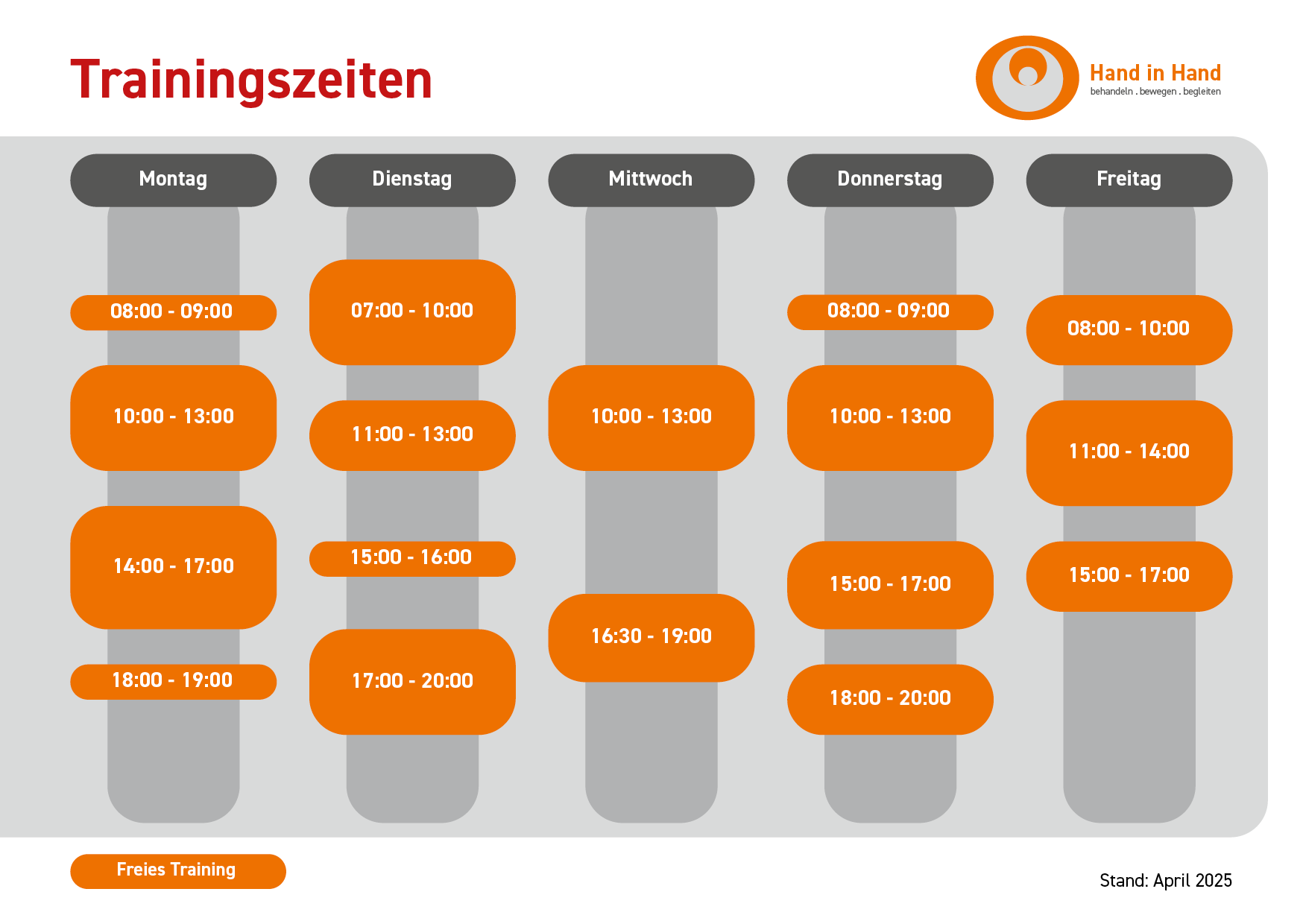 Sie haben bei "Hand in Hand" die Möglichkeit eigenverantwortlich für Ihre Gesundheit Sorge zu tragen, indem Sie hier das freie Training in Anspruch nehmen. Eine professionelle Begleitung durch unsere Physiotherapeuten ist zu jedem Zeitpunkt gesichert.